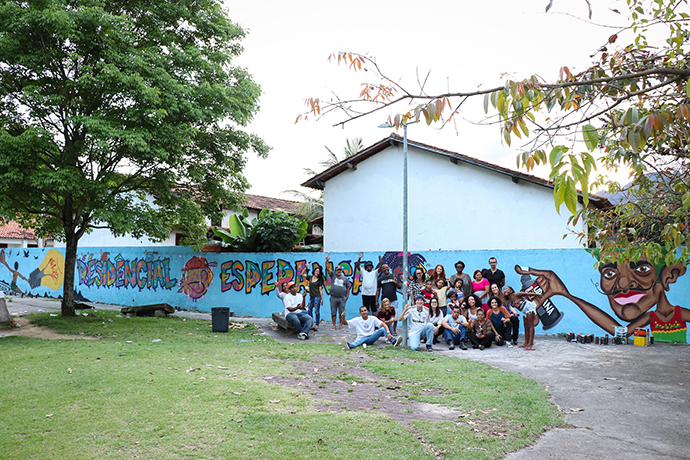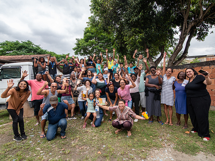 Comunidad Esperança. Celebrando la pintura del muro hecha por los propios moradores con apoyo de un profesional. Foto: Catalytic Communities.