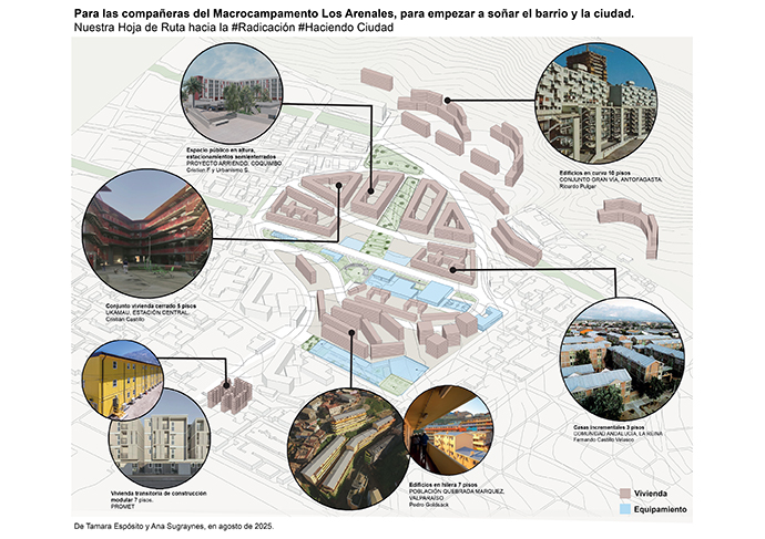 Lo novedoso de Los Arenales es que la comunidad, a través de 60 dirigentes, sigue definiendo las metas de este proceso de radicación haciendo ciudad y, para esto, cuenta con el apoyo del equipo técnico independiente, entre otros, para: