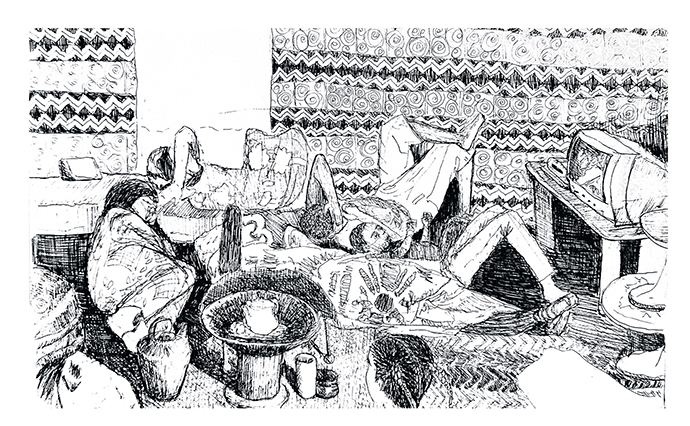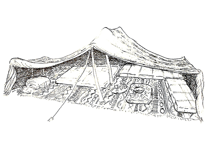 La haima no solo está en su dominio, también es su creación. Las mujeres se encargan de tejer sus cubiertas, decorar el interior con textiles de motivos y patrones, lo que genera el lenguaje identitario. Además, disponen y organizan los objetos de las habitaciones.
