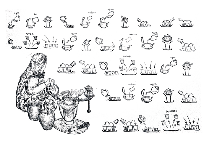 El tejido es un elemento central de esta transmisión. Coser y tejer no son actividades puramente funcionales, son actos de reconstrucción simbólica del hogar. Del mismo modo, ordenar y disponer los objetos mediante lo cual se dota de carácter a los espacios domésticos.